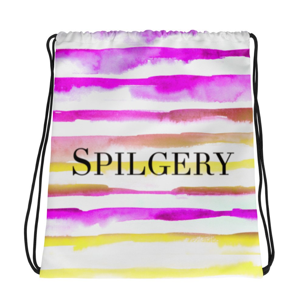 SPILGERY x Little Lines / Drawstring Bag x Purple-Yellow on White