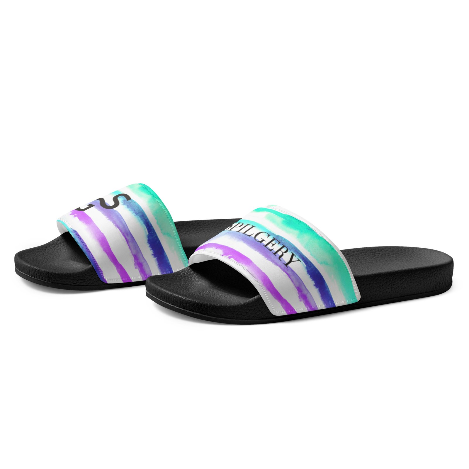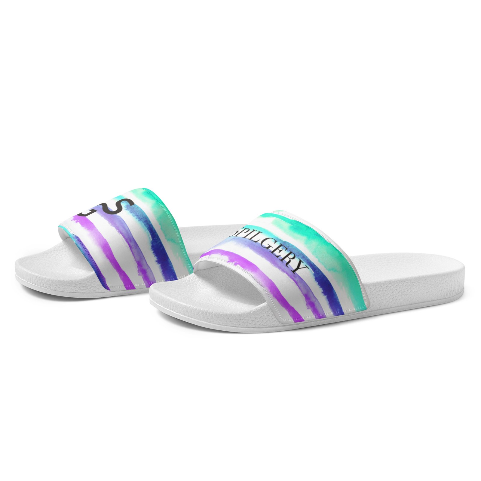 SPILGERY x Little Lines / Slides for Men x Turquise-Purple on White