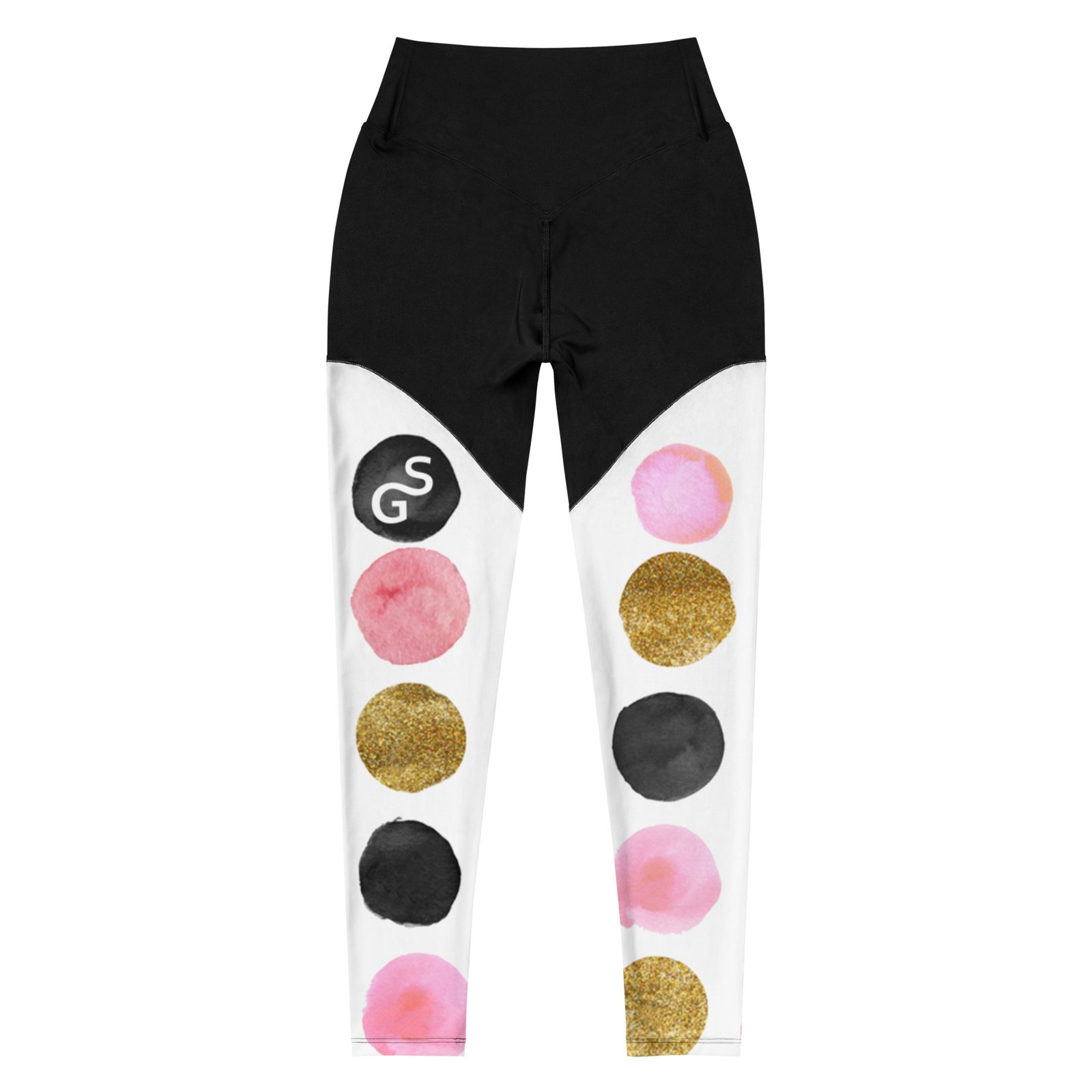 SPILGERY x Dots / Sports Leggings for Women x Pink on Black-White #2