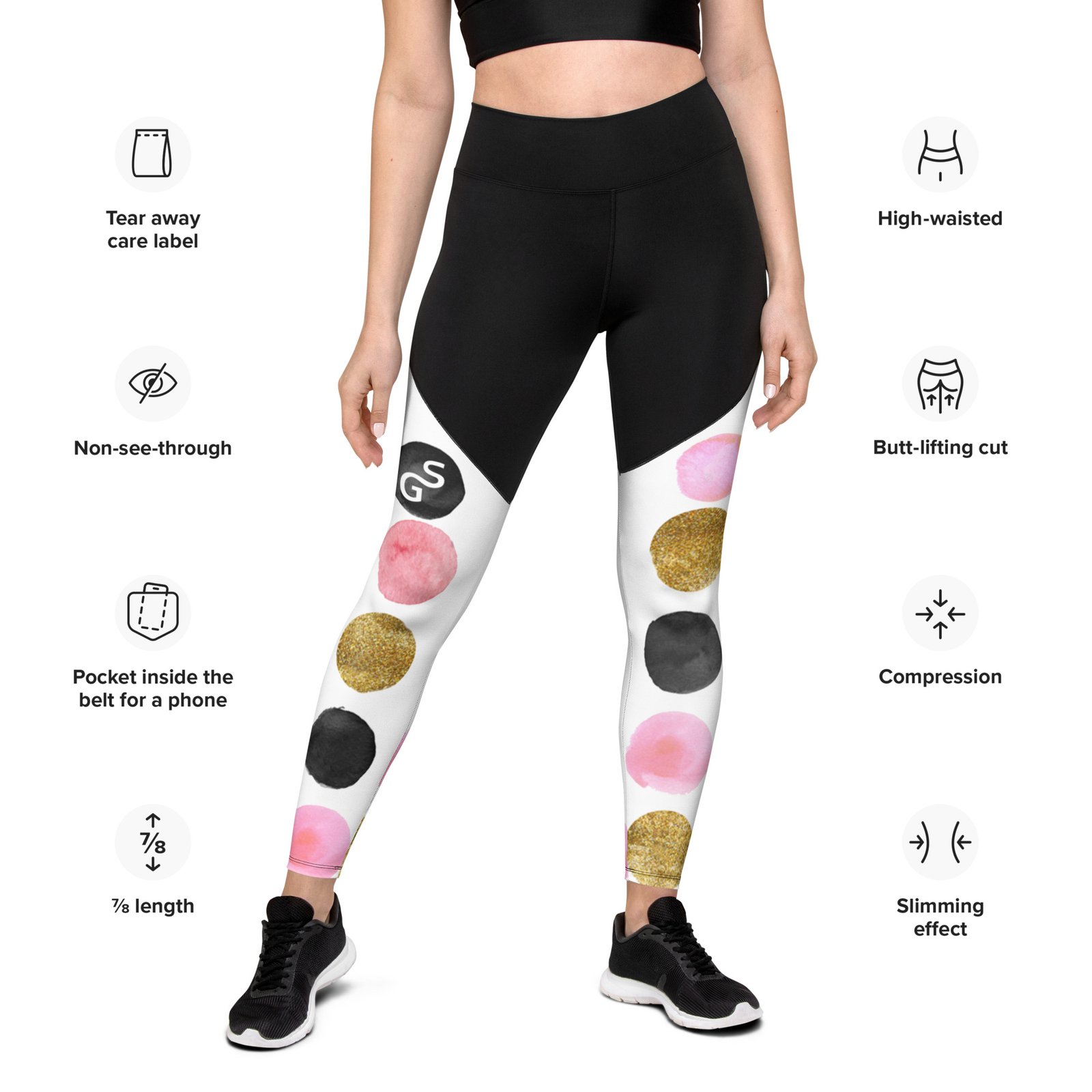 SPILGERY x Dots / Sports Leggings for Women x Pink on Black-White #2 mennyiség