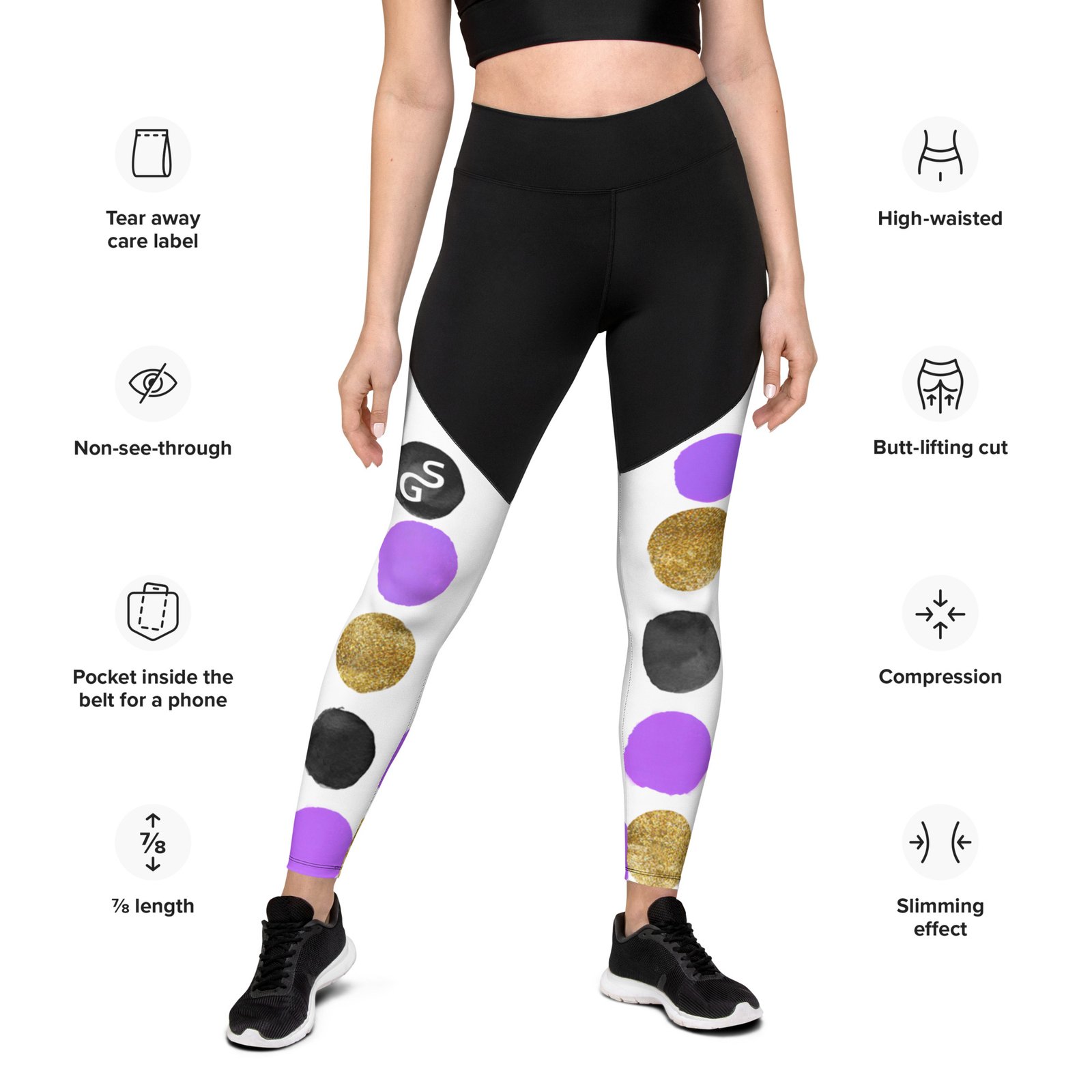 SPILGERY x Dots / Sports Leggings for Women x Purple on Black-White #2 mennyiség