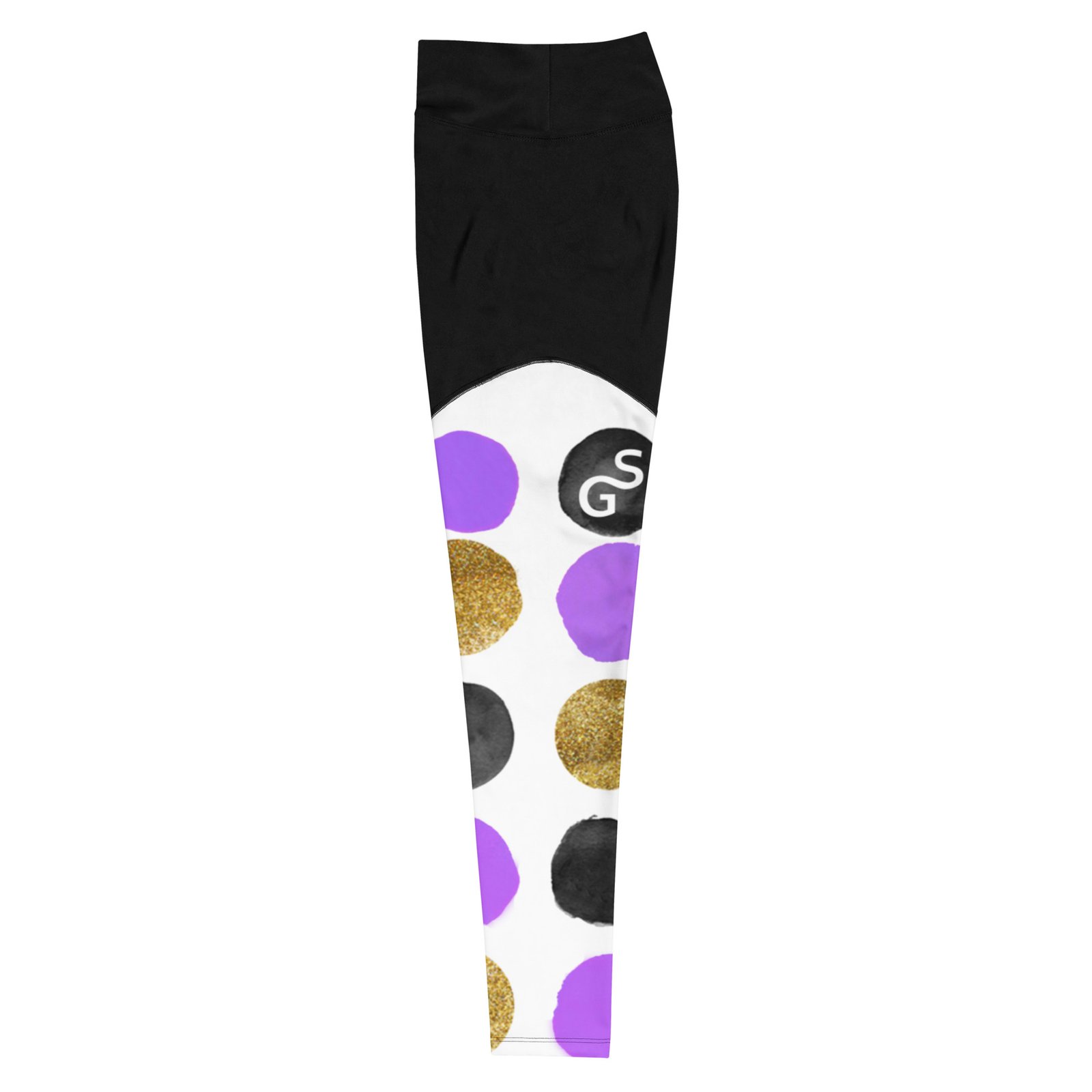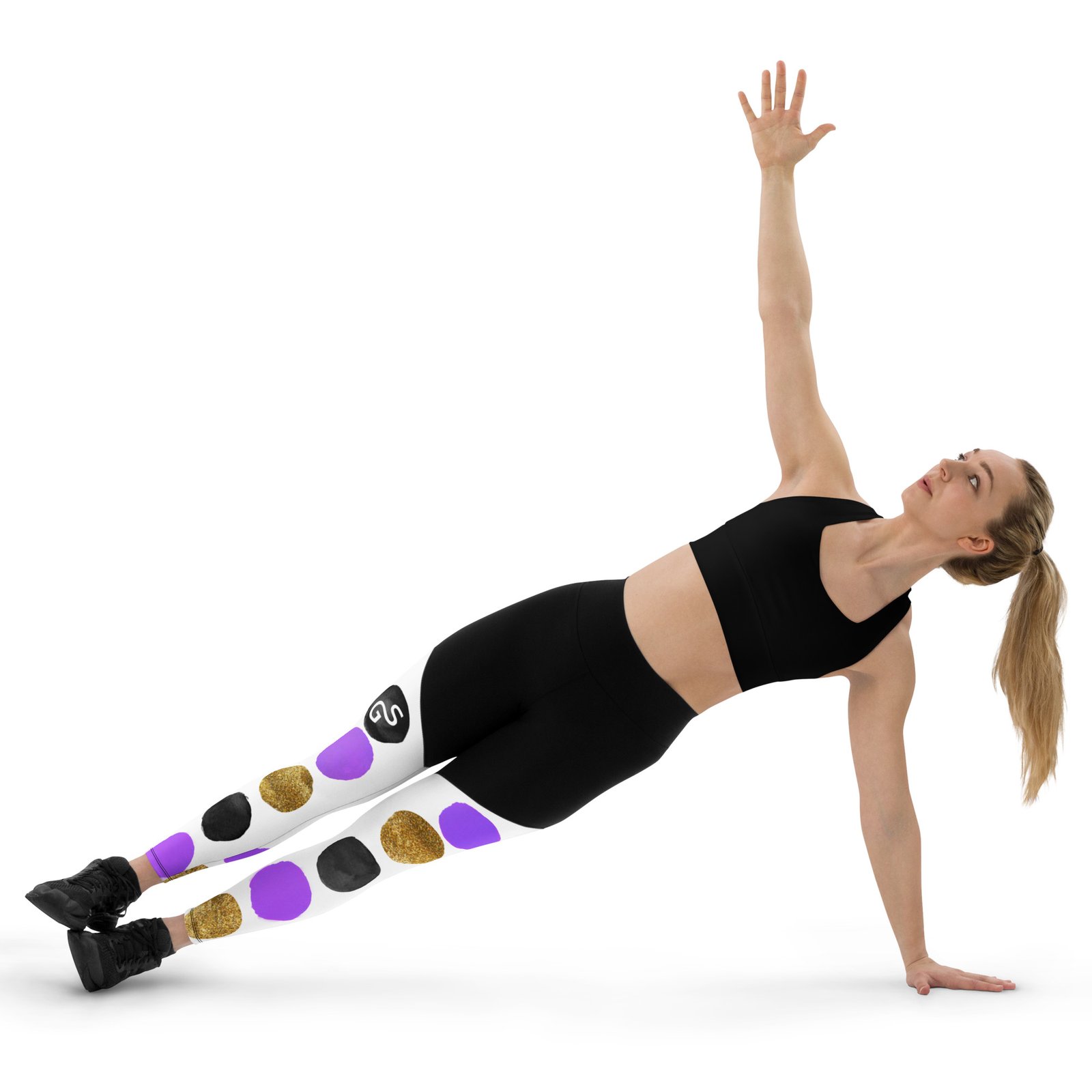 SPILGERY x Dots / Sports Leggings for Women x Purple on Black-White #2