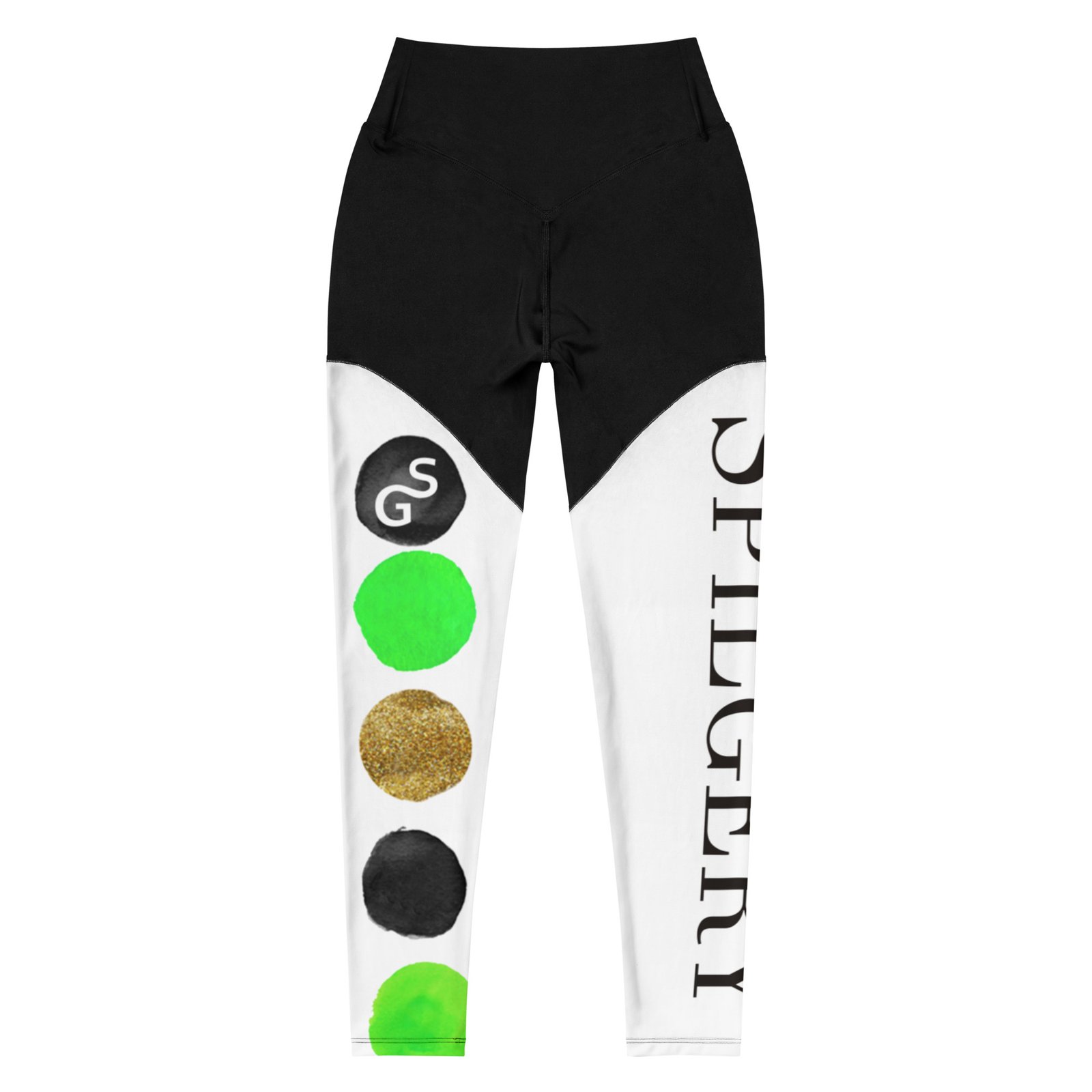 SPILGERY x Dots / Sports Leggings for Women x Green on Black-White #1