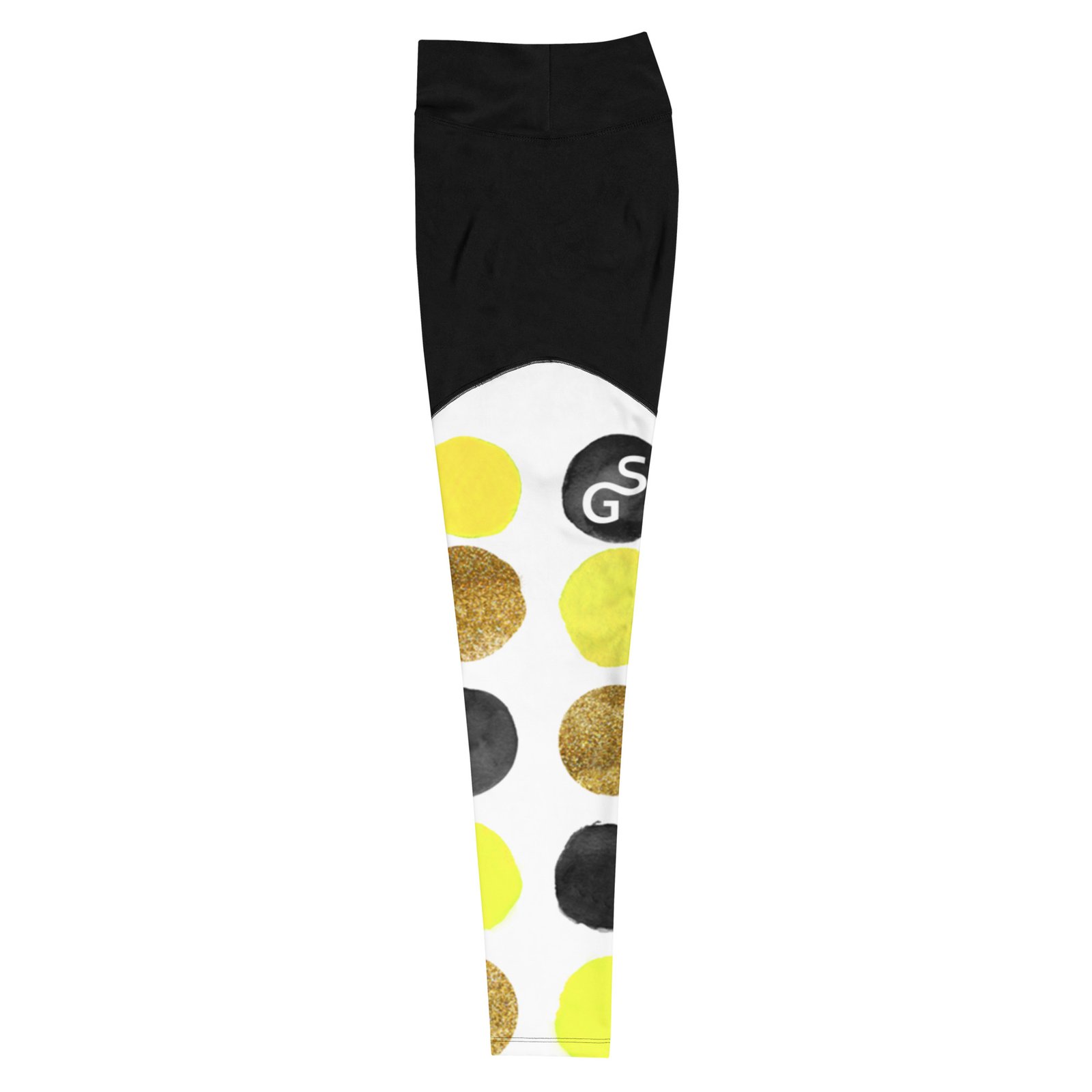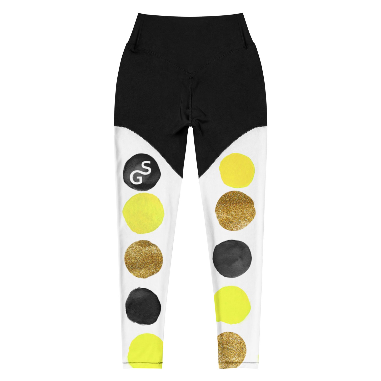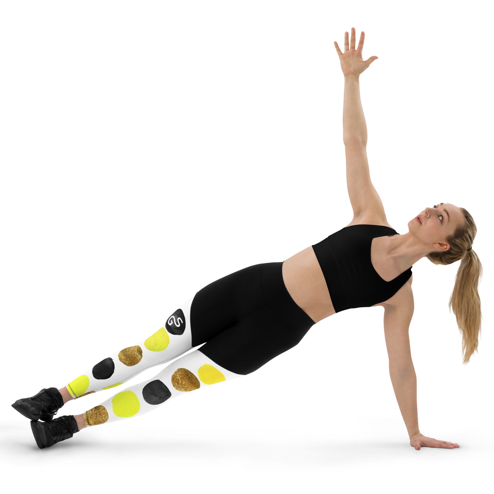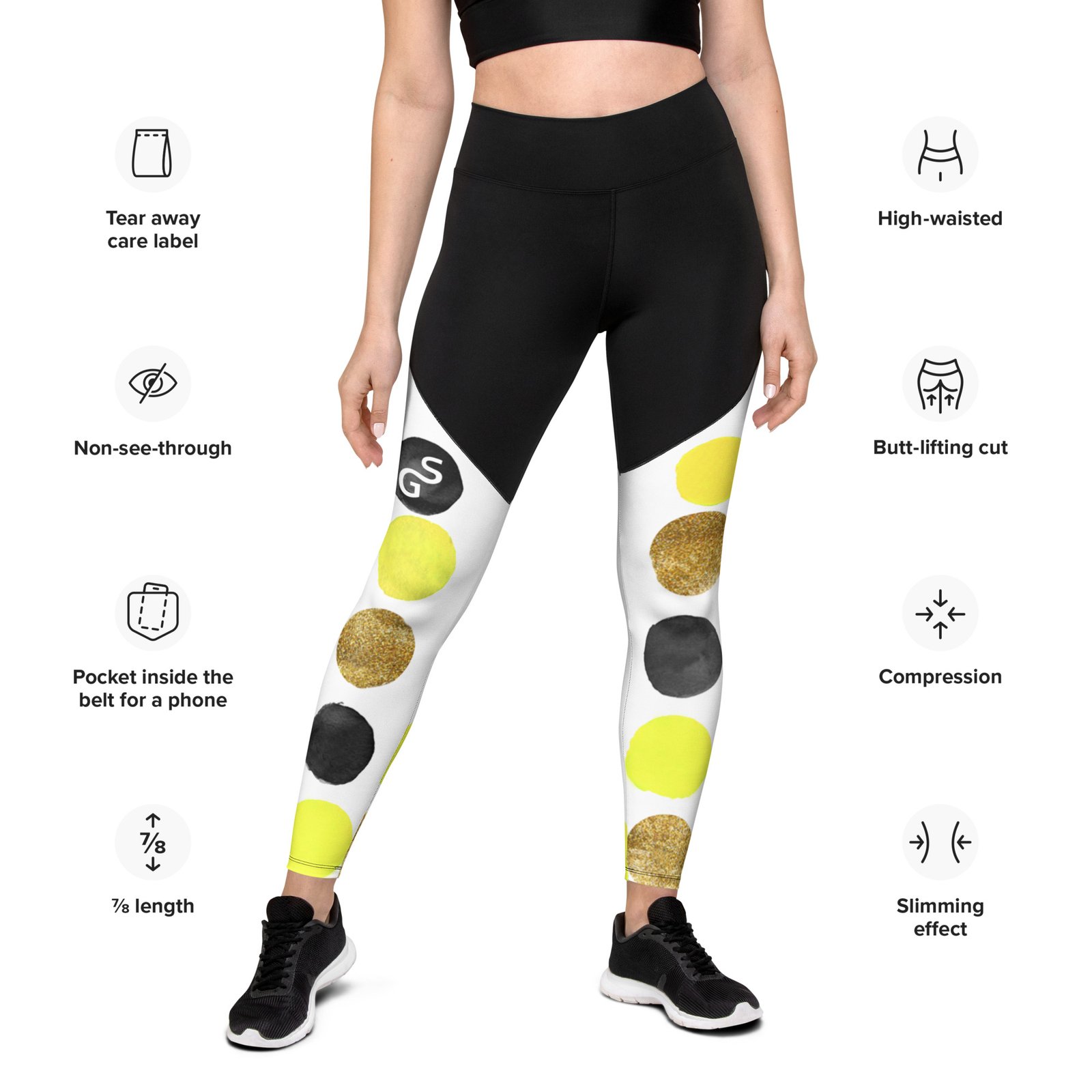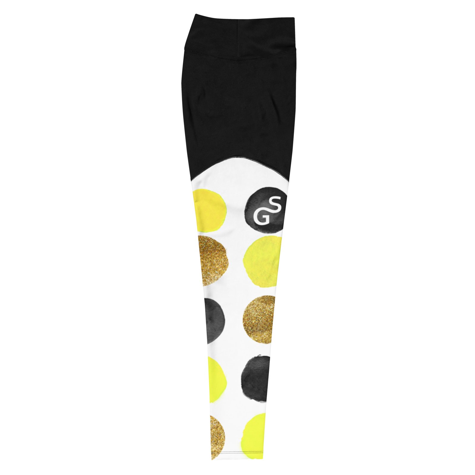 SPILGERY x Dots / Sports Leggings for Women x Yellow on Black-White #2