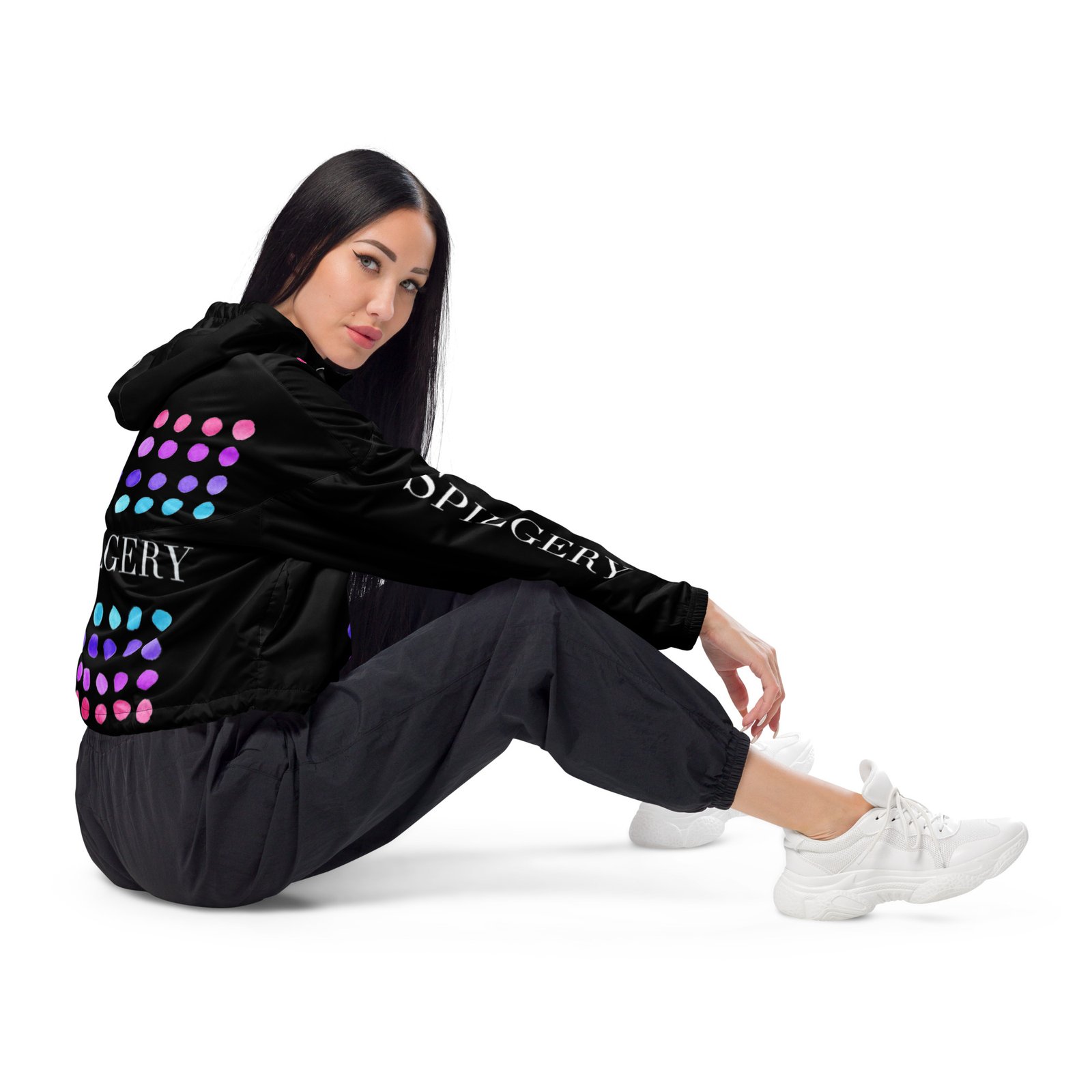 SPILGERY x Little Dots / Cropped windbreaker for Women x Turquise-Purple on Black