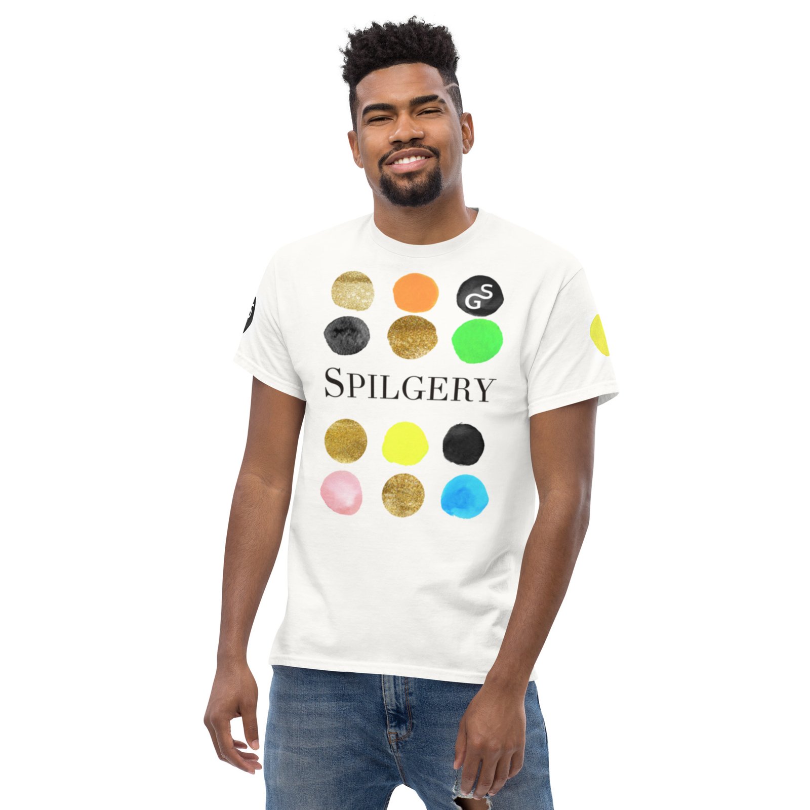 SPILGERY x Dots / Classic T-shirt for Men x Neon Colors on White